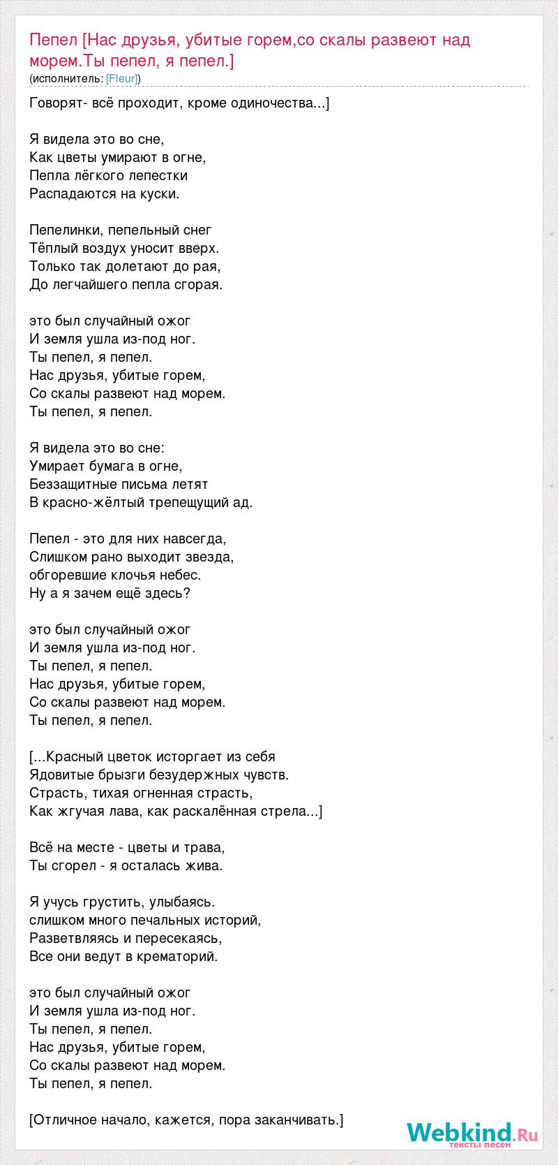 Главная→Исполнители→[Fleur]→Пепел [Нас друзья, убитые горем,со скалы развеют над морем.Ты пепел, я п
