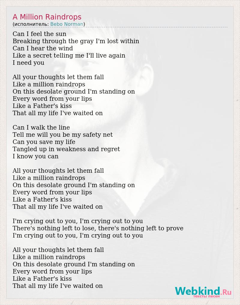 А как ты думаешь, о чем песня "A Million Raindrops" ?