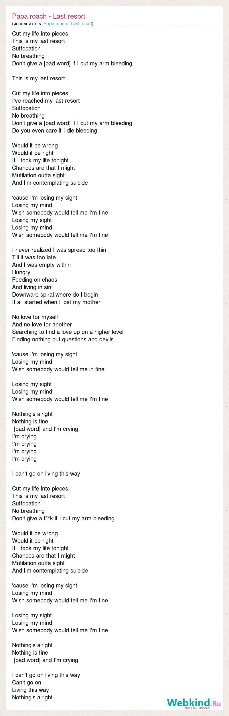 А как ты думаешь, о чем песня "Papa roach - Last resort" ?