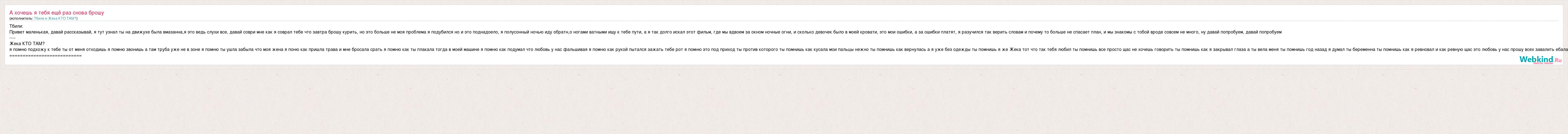 Тбили: Привет маленькая, давай рассказывай, я тут узнал ты на движухе была вмазанна,я это ведь слухи все, давай соври мне как я соврал тебе что завтра брошу курить, но это больше не моя проблема я подубился но и это поднадоело, я полусонный ночью иду обратн,о ногами ватными ищу к тебе пути, а я так долго искал этот фильм, где мы вдвоем за окном ночные огни, и сколько девочек было в моей кровати, это мои ошибки, а за ошибки платят, я разучился так верить словам и почему то больше не спасает план, и мы знакомы с тобой вроде совсем не много, ну давай попробуем, давай попробуем ---- Жека КТО ТАМ? я помню подхожу к тебе ты от меня отходишь я помню звонишь а там труба уже не в зоне я помню ты ушла забыла что моя жена я поню как пришла трава и мне бросала срать я помню как ты плакала тогда в моей машине я помню как подумал что любовь у нас фальшивая я помню как рукой пытался зажать тебе рот я помню это под приход ты против которого ты помнишь как кусала мои пальцы нежно ты помнишь как вернулась а я уже без одежды ты помнишь я же Жека тот что так тебя любил ты помнишь все просто щас не хочешь говорить ты помнишь как я закрывал глаза а ты вела меня ты помнишь год назад я думал ты беременна ты помнишь как я ревновал и как ревную щас это любовь у нас прошу всех завалить ебала ===========================