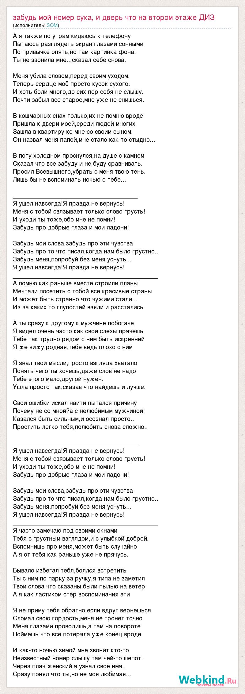 А как ты думаешь, о чем песня "Забудь мой номер сука, и дверь что на втором этаже ДИЗ" ?