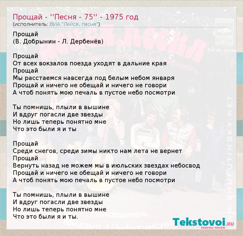 А как ты думаешь, о чем песня "Прощай - ''Песня - 75'' - 1975 год" ?