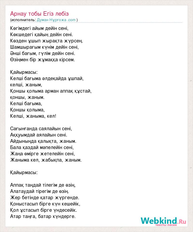 А как ты думаешь, о чем песня "Арнау тобы Егіз лебіз" ?