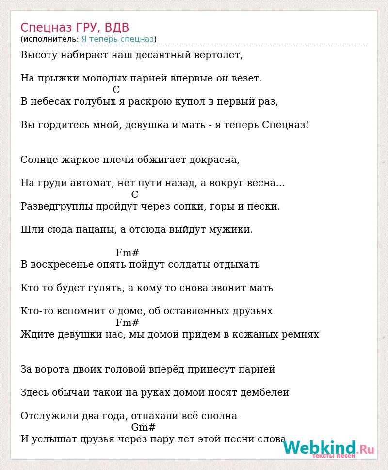 А как ты думаешь, о чем песня "Спецназ ГРУ, ВДВ" ?