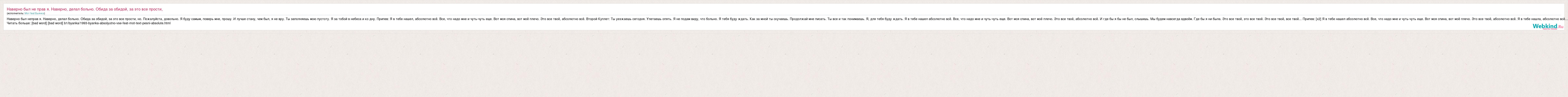 Наверно был не прав я. Наверно, делал больно. Обида за обидой, за это все прост