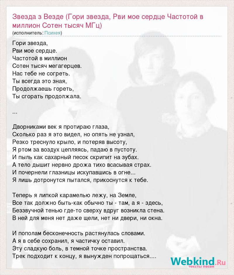 Главная→Исполнители→Психея→Звезда з Везде (Гори звезда, Рви мое сердце Частотой в миллион Сотен тысяч МГ