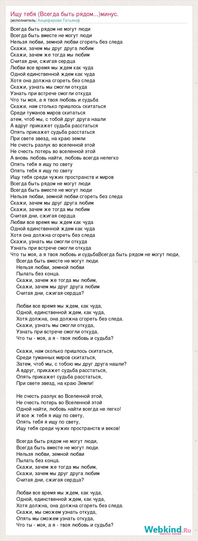 А как ты думаешь, о чем песня "Ищу тебя (Всегда быть рядом...)минус." ?