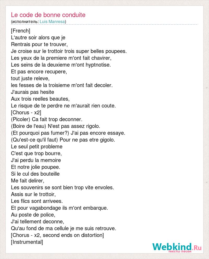 А как ты думаешь, о чем песня "Le code de bonne conduite" ?