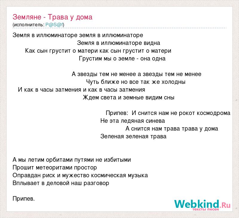 А как ты думаешь, о чем песня "Земляне - Трава у дома" ?