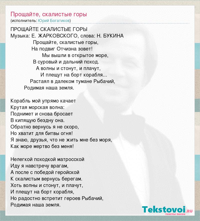Музыка: Е. ЖАРКОВСКОГО, слова: Н. БУКИНА