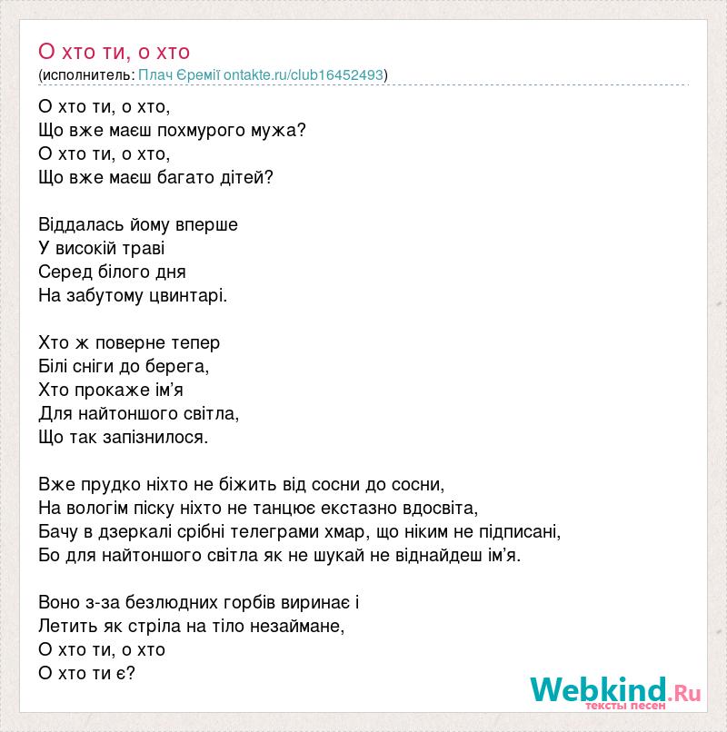 А как ты думаешь, о чем песня "О хто ти, о хто" ?
