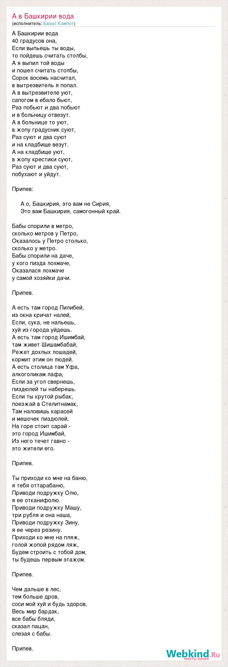 А как ты думаешь, о чем песня "А в Башкирии вода" ?