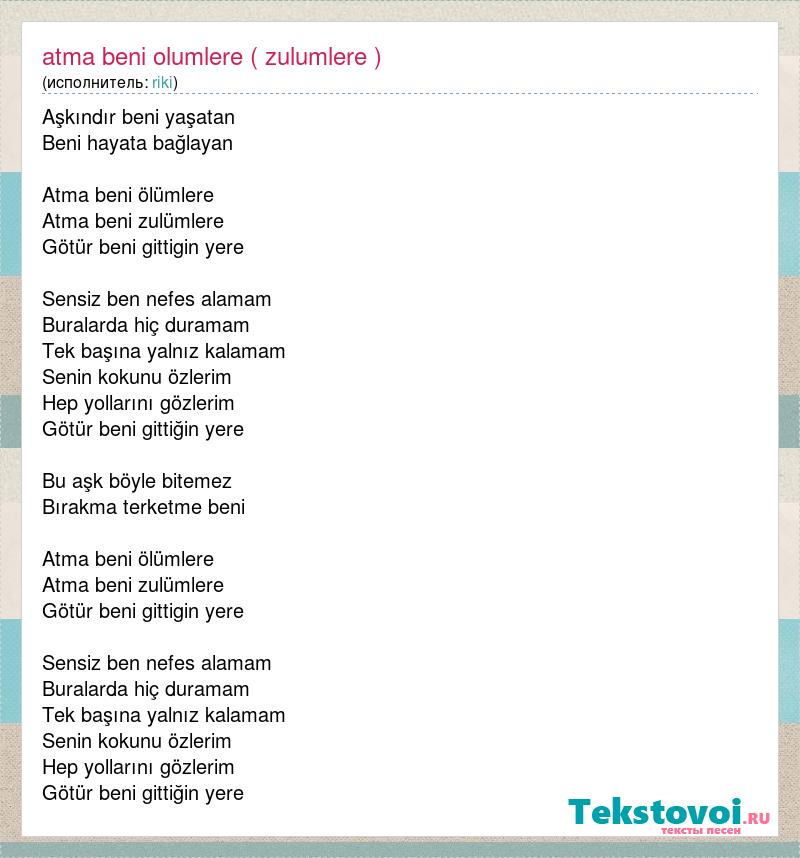 А как ты думаешь, о чем песня "Atma beni olumlere ( zulumlere )" ?