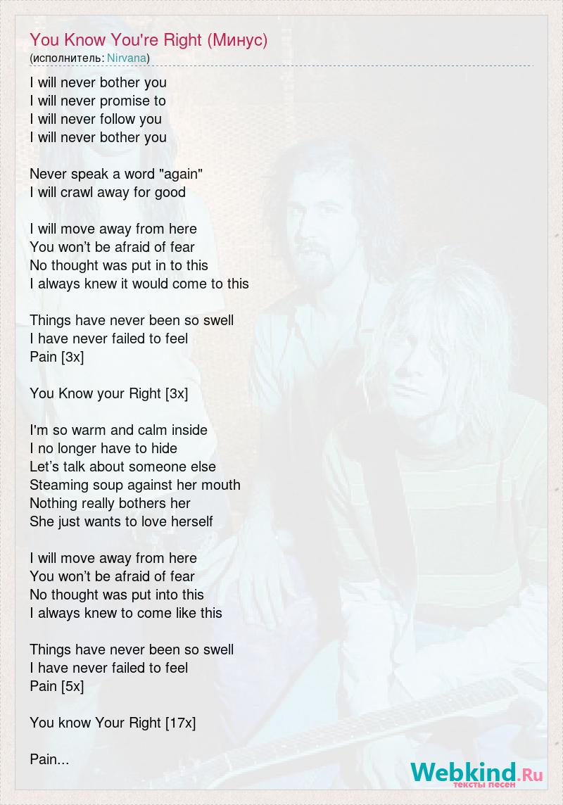 А как ты думаешь, о чем песня "You Know You're Right (Минус)" ?