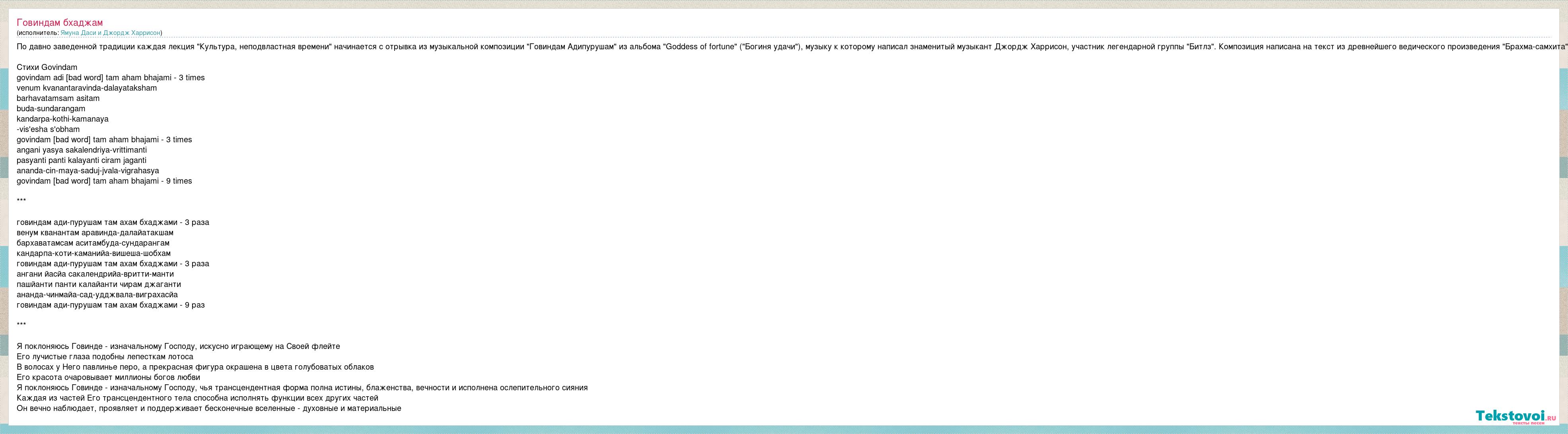 говиндам ади-пурушам там ахам бхаджами - 3 раза
