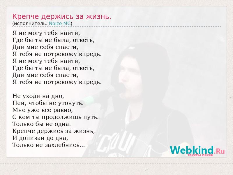 Я не могу тебя найти, Где бы ты не была, ответь, Дай мне себя спасти, Я тебя не потревожу впредь. Я не могу тебя найти, Где бы ты не была, ответь, Дай мне себя спасти, Я тебя не потревожу впредь. Не уходи на дно, Пей, чтобы не утонуть. Мне уже все равно, С кем ты продолжишь путь. Только бы не одна. Крепче держись за жизнь, И допивай до дна, Только не захлебнись...