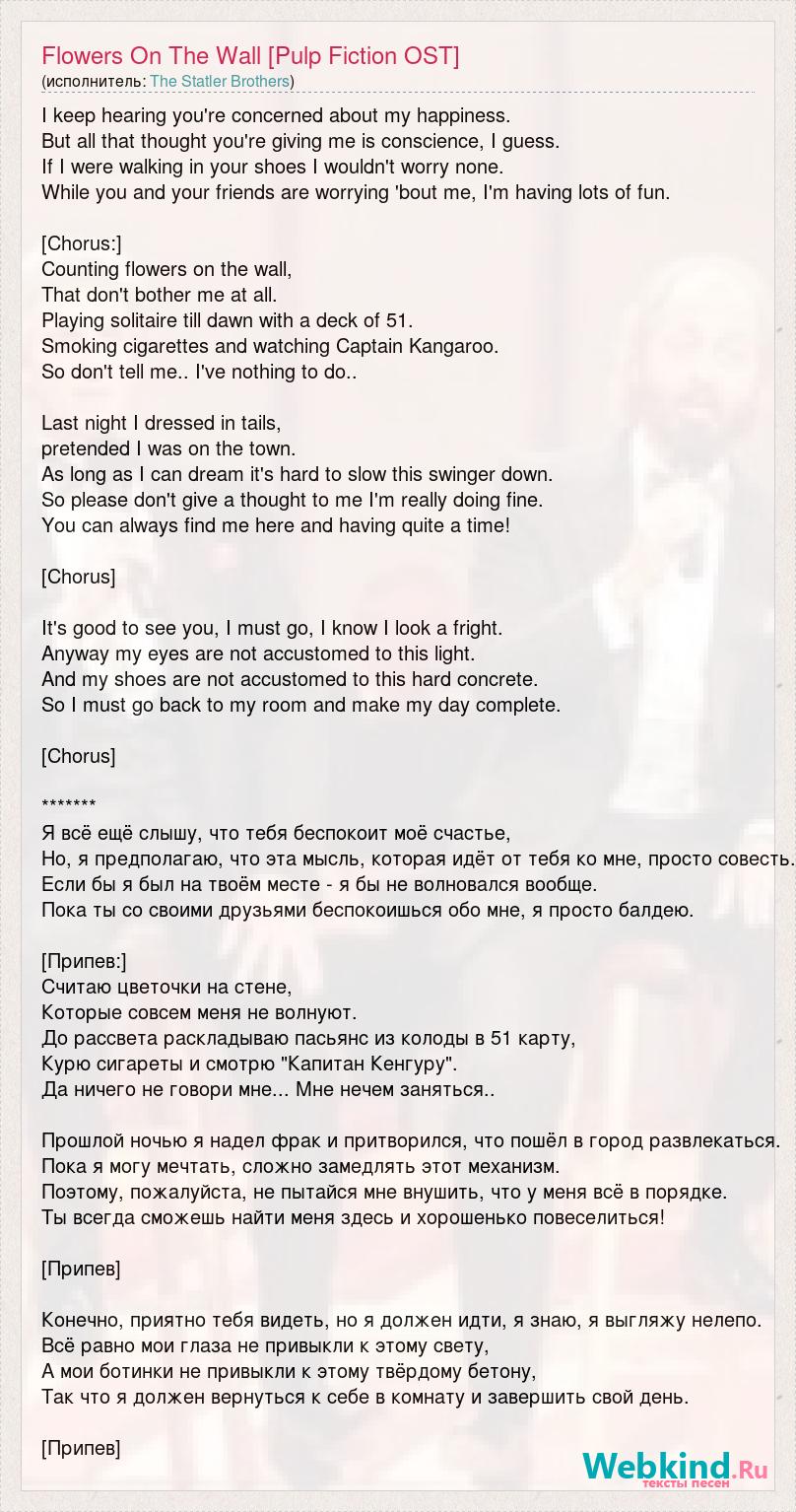 А как ты думаешь, о чем песня "Flowers On The Wall [Pulp Fiction OST]" ?