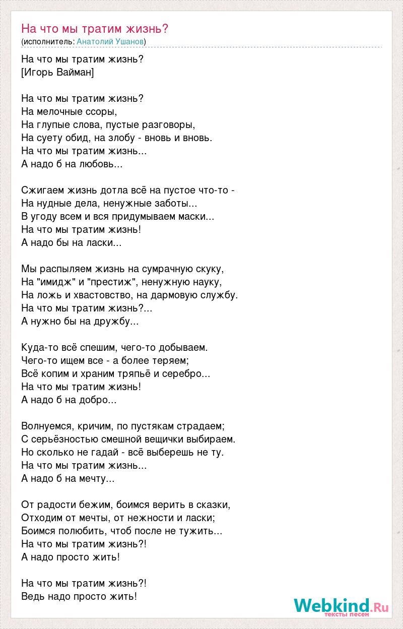 А как ты думаешь, о чем песня "На что мы тратим жизнь?" ?