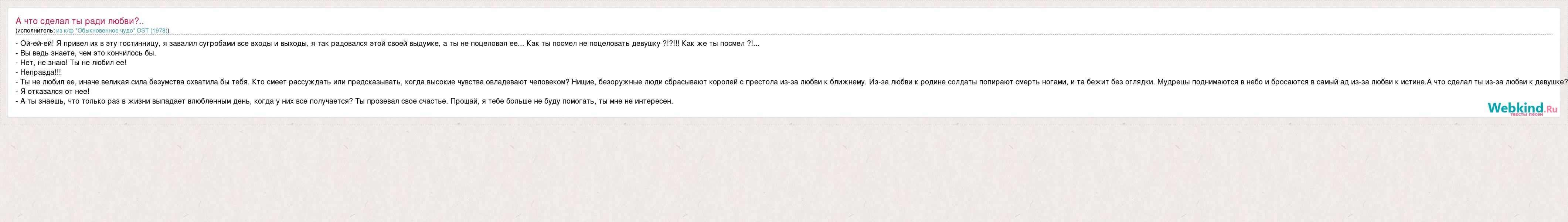 А как ты думаешь, о чем песня "А что сделал ты ради любви?.." ?