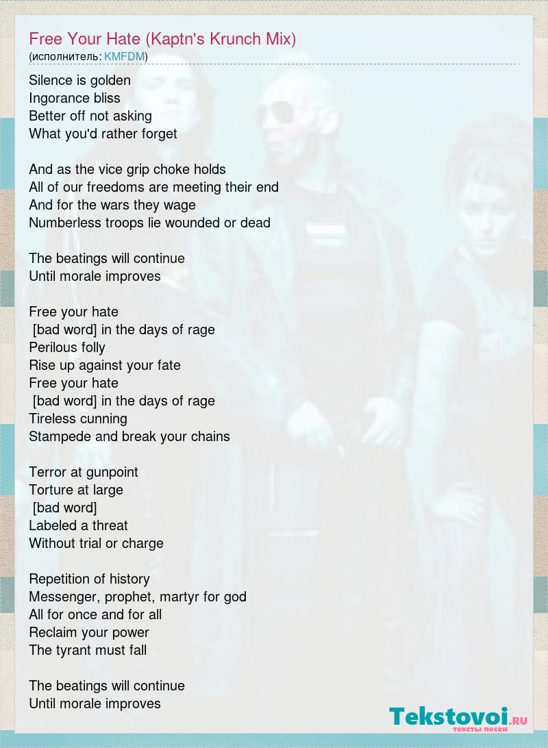 А как ты думаешь, о чем песня "Free Your Hate (Kaptn's Krunch Mix)" ?