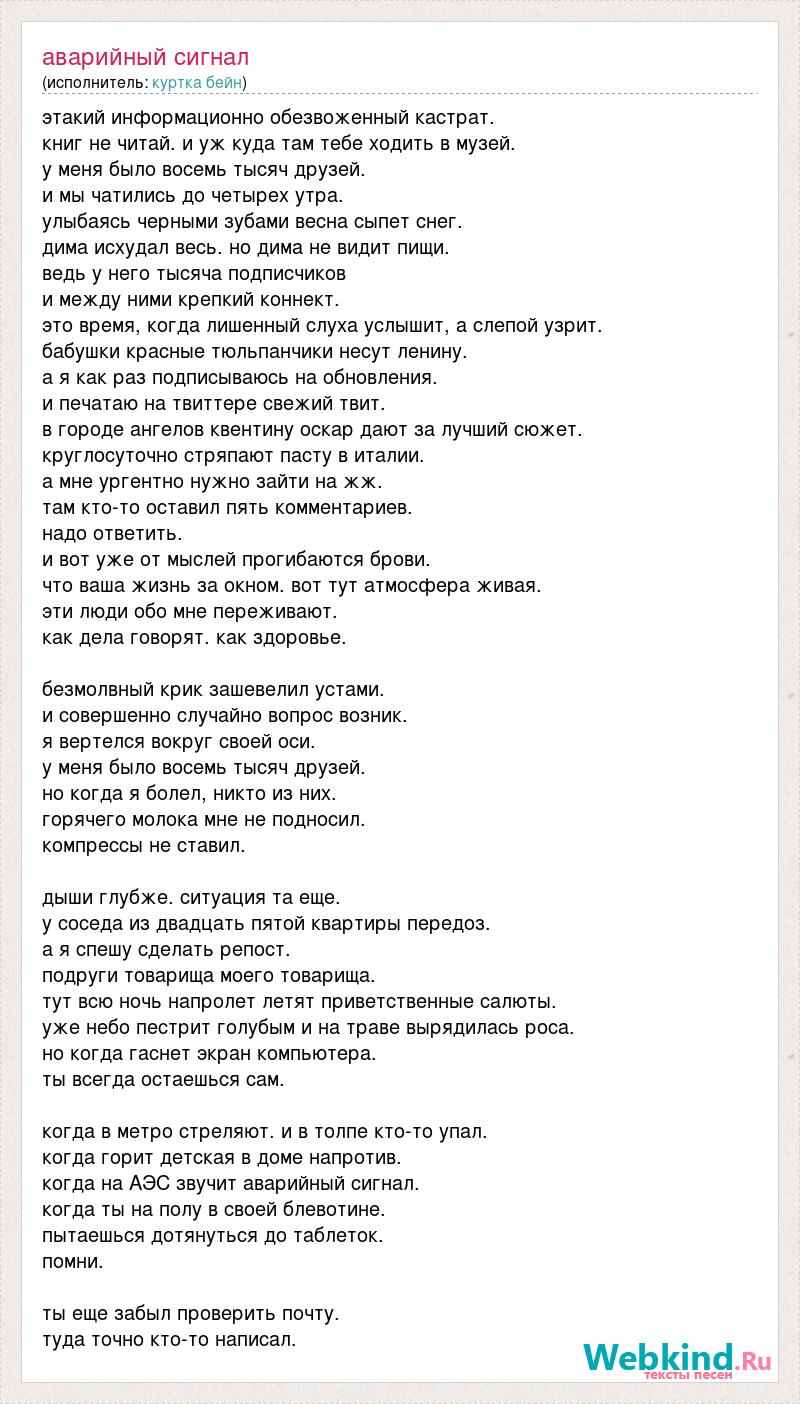 А как ты думаешь, о чем песня "Аварийный сигнал" ?