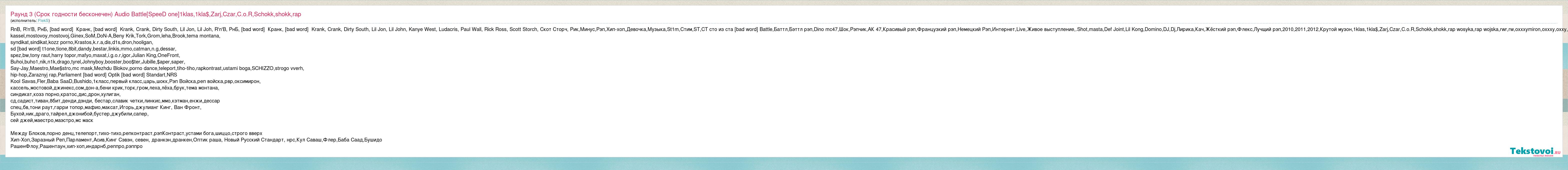 Главная→Исполнители→FlekS→Раунд 3 (Срок годности бесконечен) Audio Battle[SpeeD one]1klas,1kla$,Zarj,Czar,
