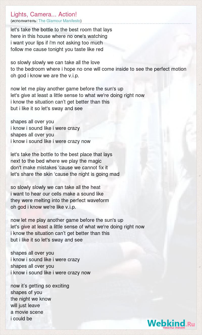 А как ты думаешь, о чем песня "Lights, Camera... Action!" ?