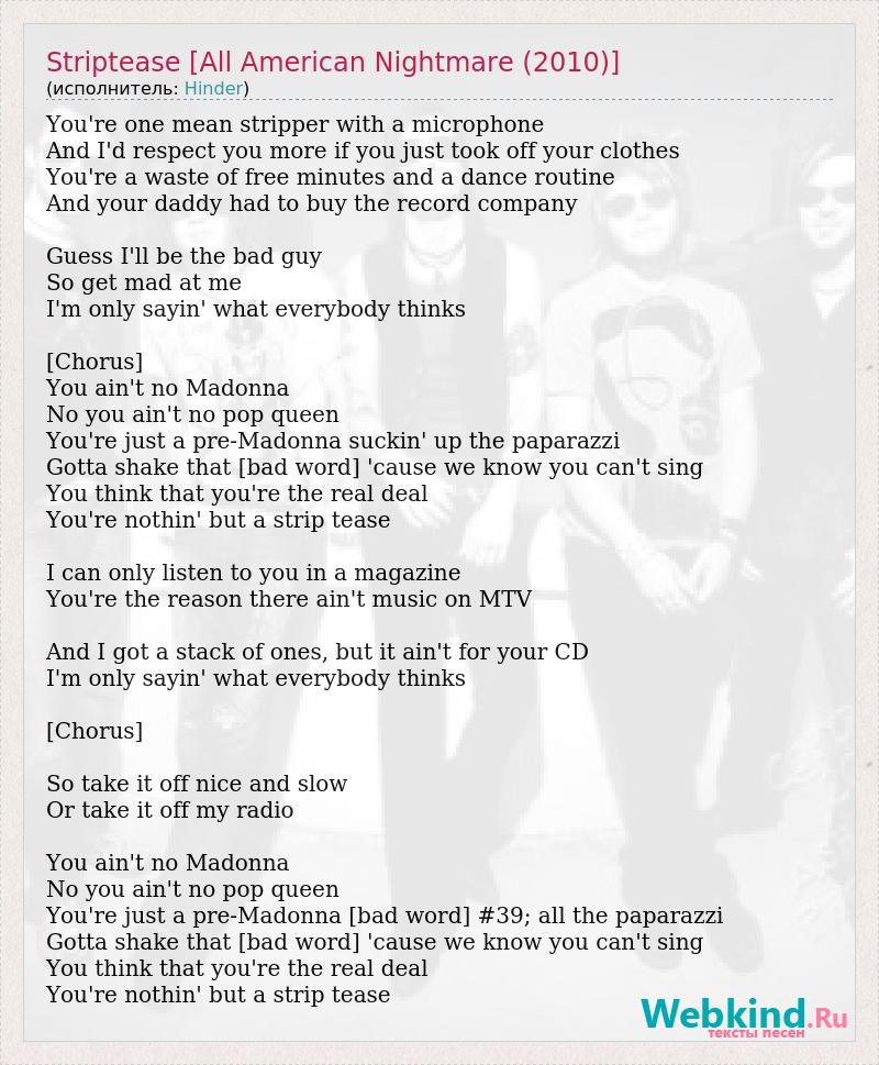 А как ты думаешь, о чем песня "Striptease [All American Nightmare (2010)]" ?