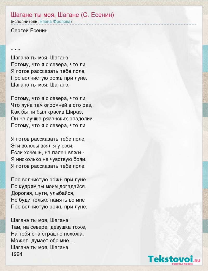 Шагане ты моя, Шагане (С. Есенин)