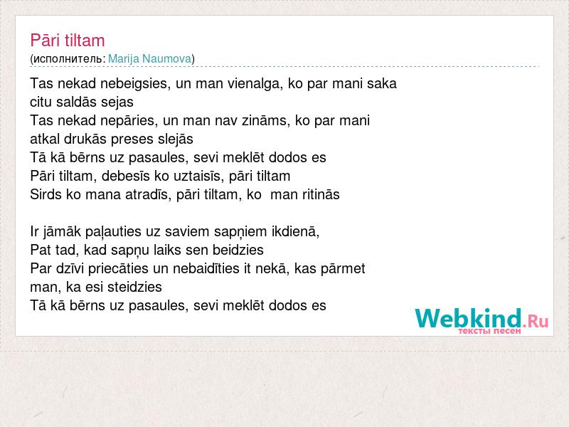 А как ты думаешь, о чем песня "Pāri tiltam" ?