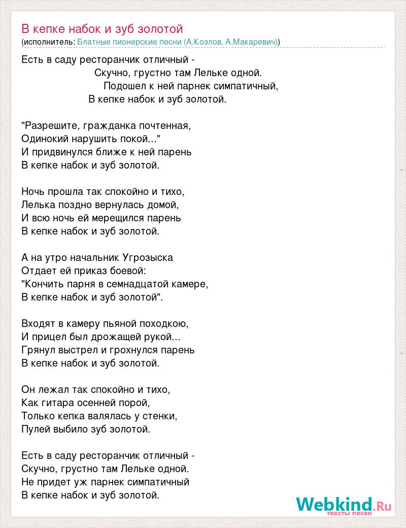 А как ты думаешь, о чем песня "В кепке набок и зуб золотой" ?