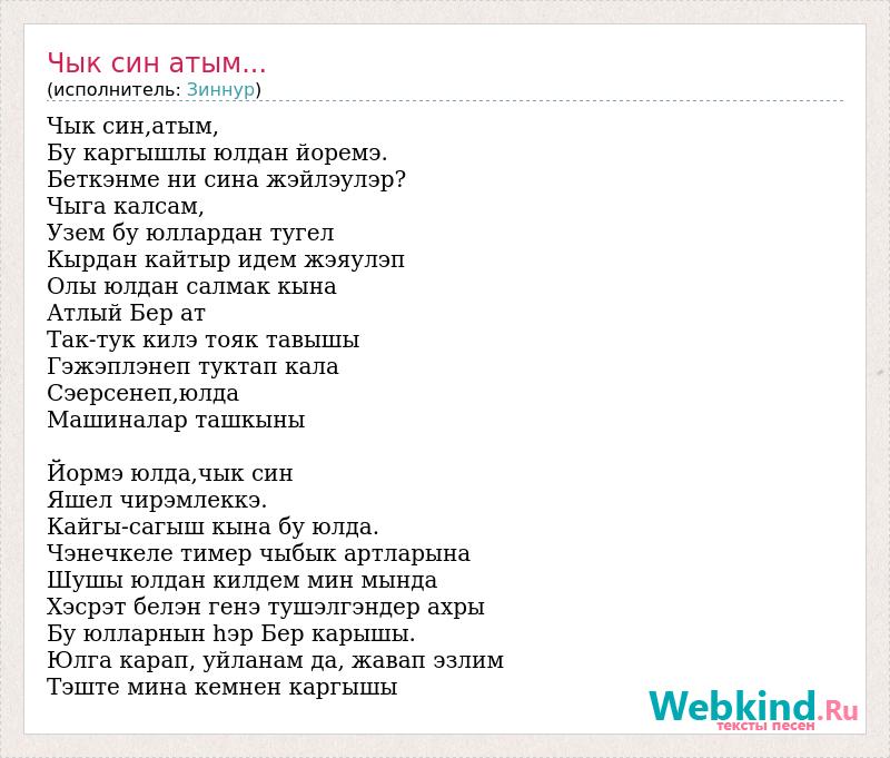 А как ты думаешь, о чем песня "Чык син атым..." ?