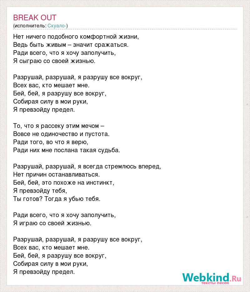 А как ты думаешь, о чем песня "BREAK OUT" ?