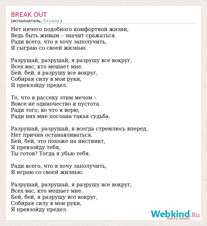 А как ты думаешь, о чем песня "BREAK OUT" ?