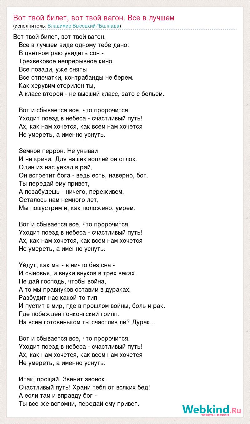 А как ты думаешь, о чем песня "Вот твой билет, вот твой вагон. Все в лучшем" ?