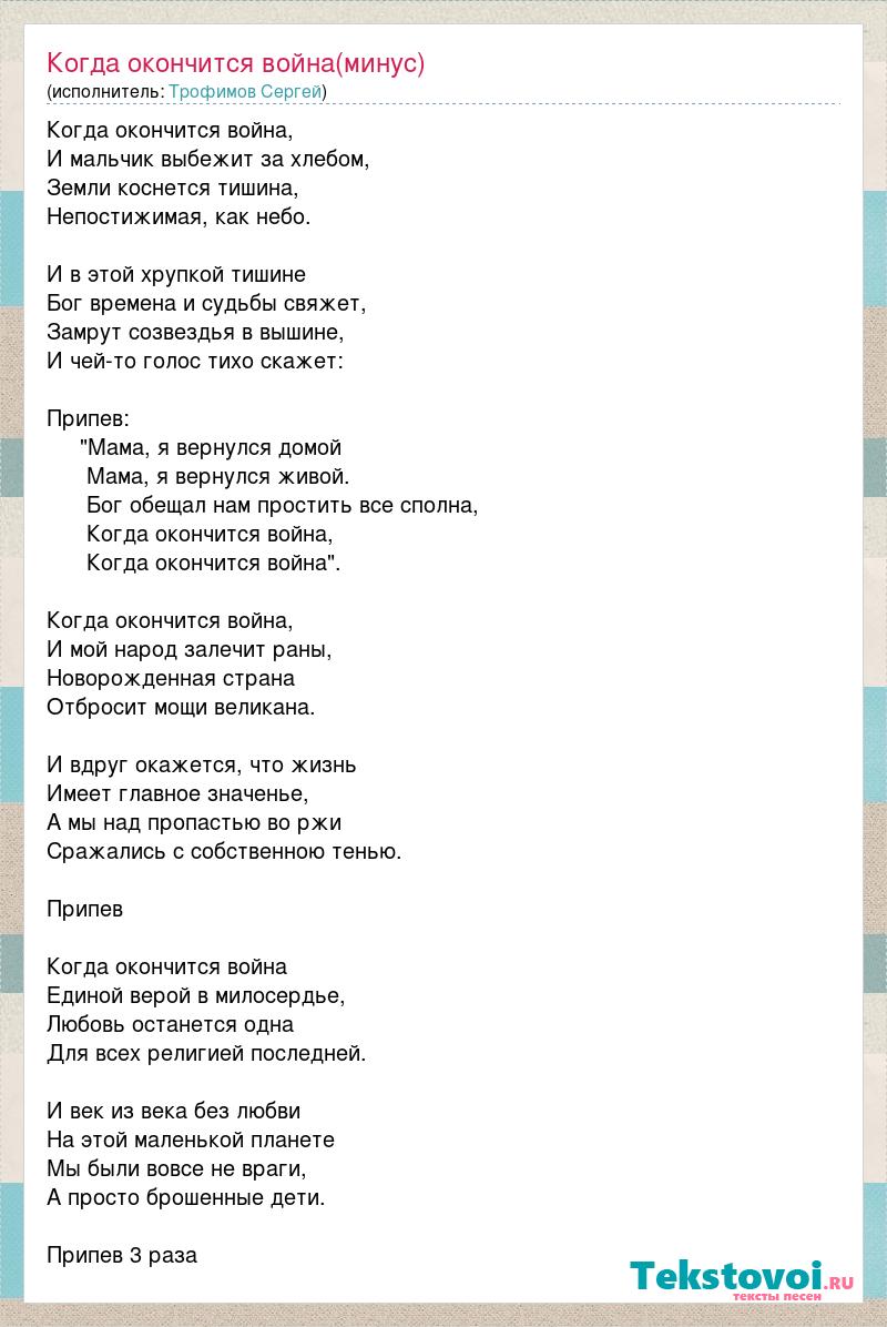А как ты думаешь, о чем песня "Когда окончится война(минус)" ?