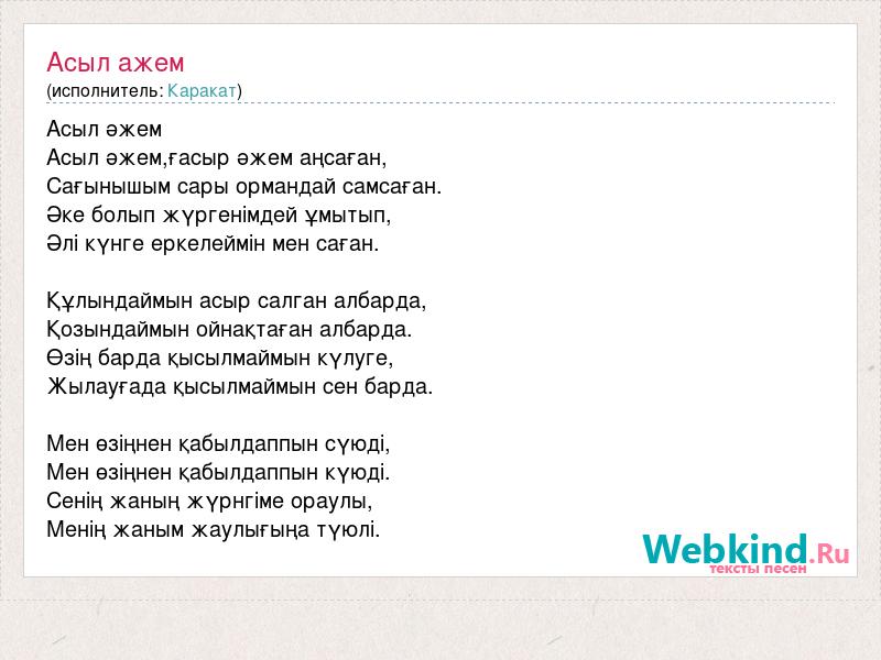 А как ты думаешь, о чем песня "Асыл ажем" ?