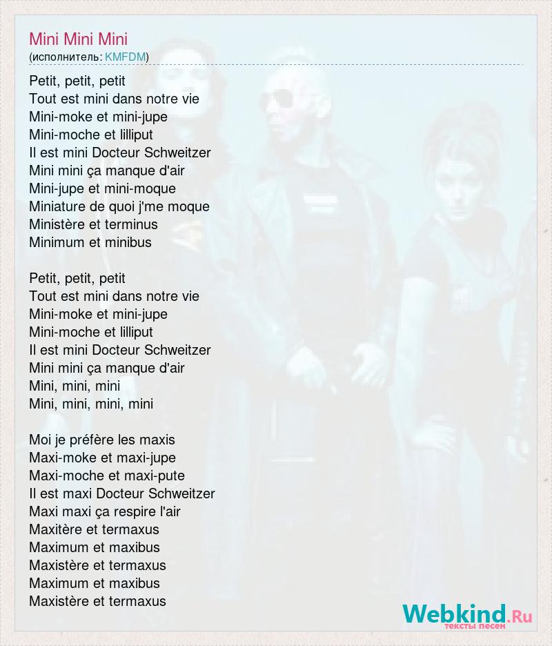 Petit, petit, petit Tout est mini dans notre vie Mini-moke et mini-jupe Mini-moche et lilliput Il est mini Docteur Schweitzer Mini mini ça manque d'air Mini-jupe et mini-moque Miniature de quoi j'me moque Ministère et terminus Minimum et minibus Petit, petit, petit Tout est mini dans notre vie Mini-moke et mini-jupe Mini-moche et lilliput Il est mini Docteur Schweitzer Mini mini ça manque d'air Mini, mini, mini Mini, mini, mini, mini Moi je préfère les maxis Maxi-moke et maxi-jupe Maxi-moche et maxi-pute Il est maxi Docteur Schweitzer Maxi maxi ça respire l'air Maxitère et termaxus Maximum et maxibus Maxistère et termaxus Maximum et maxibus Maxistère et termaxus