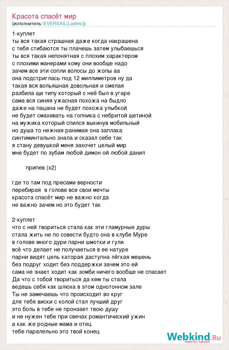 А как ты думаешь, о чем песня "Красота спасёт мир" ?