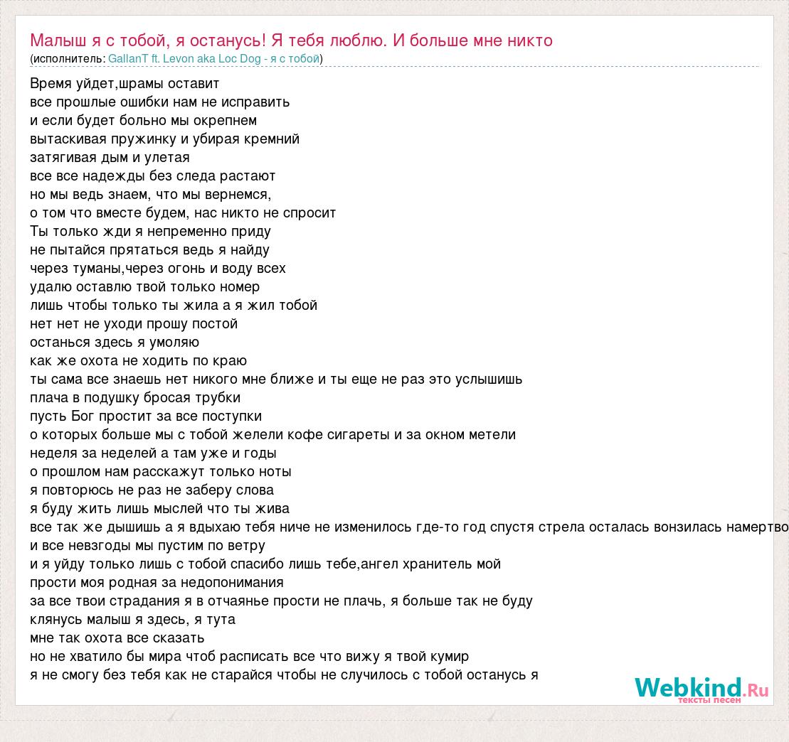 Главная→Исполнители→GallanT ft. Levon aka Loc Dog - я с тобой→Малыш я с тобой, я останусь! Я тебя люблю. И больше мне никто