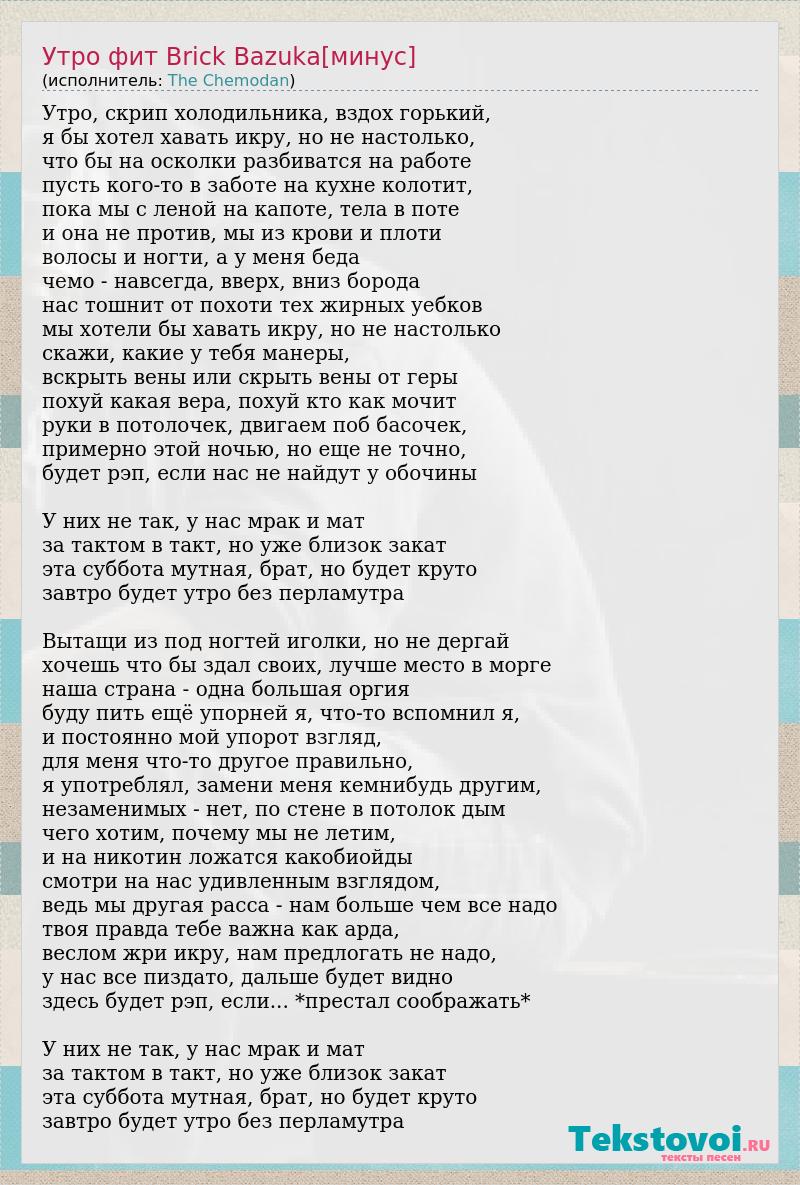 А как ты думаешь, о чем песня "Утро фит Brick Bazuka[минус]" ?