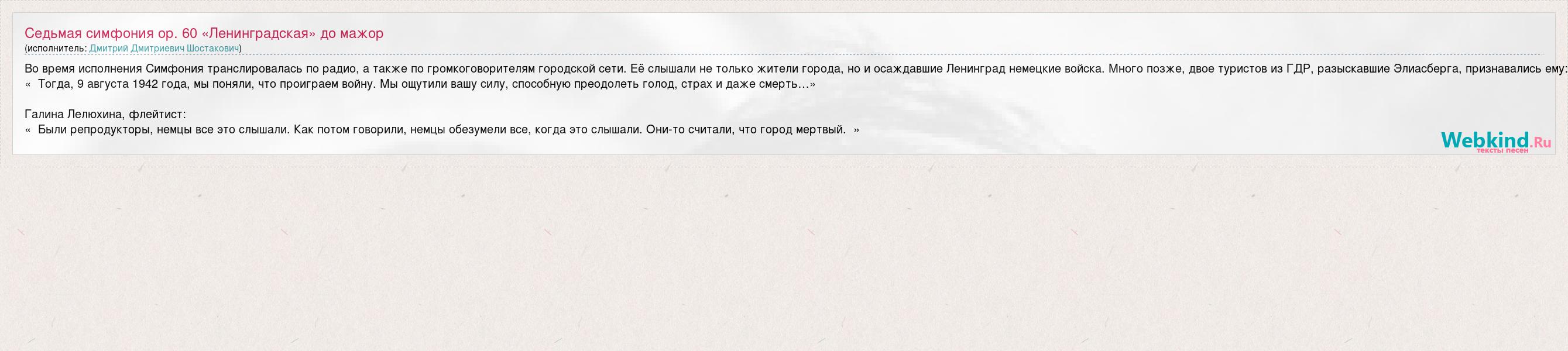 А как ты думаешь, о чем песня "Седьмая симфония ор. 60 «Ленинградская» до мажор" ?
