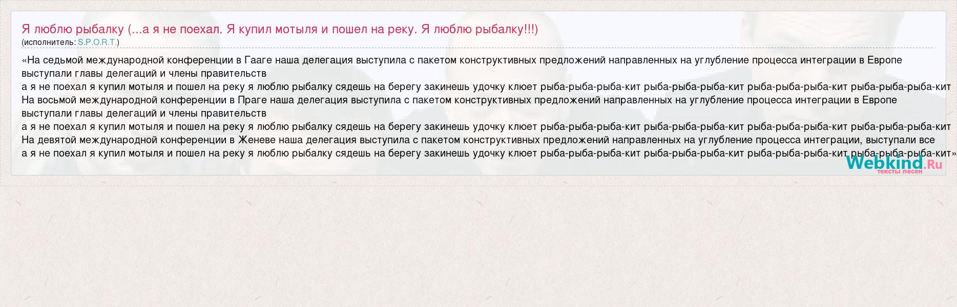 «На седьмой международной конференции в Гааге наша делегация выступила с пакетом конструктивных предложений направленных на углубление процесса интеграции в Европе выступали главы делегаций и члены правительств а я не поехал я купил мотыля и пошел на реку я люблю рыбалку сядешь на берегу закинешь удочку клюет рыба-рыба-рыба-кит рыба-рыба-рыба-кит рыба-рыба-рыба-кит рыба-рыба-рыба-кит На восьмой международной конференции в Праге наша делегация выступила с пакетом конструктивных предложений направленных на углубление процесса интеграции в Европе выступали главы делегаций и члены правительств а я не поехал я купил мотыля и пошел на реку я люблю рыбалку сядешь на берегу закинешь удочку клюет рыба-рыба-рыба-кит рыба-рыба-рыба-кит рыба-рыба-рыба-кит рыба-рыба-рыба-кит На девятой международной конференции в Женеве наша делегация выступила с пакетом конструктивных предложений направленных на углубление процесса интеграции, выступали все а я не поехал я купил мотыля и пошел на реку я люблю рыбалку сядешь на берегу закинешь удочку клюет рыба-рыба-рыба-кит рыба-рыба-рыба-кит рыба-рыба-рыба-кит рыба-рыба-рыба-кит»