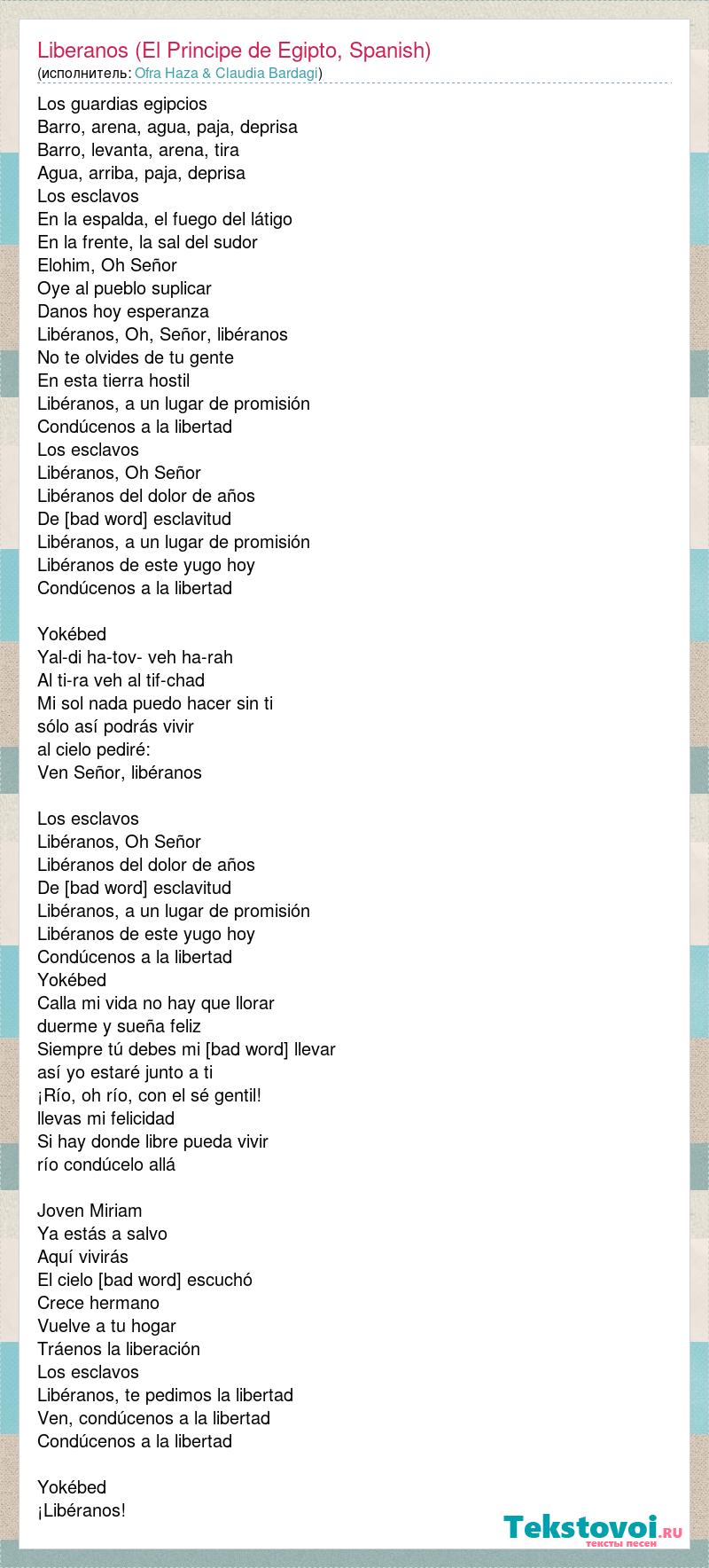 А как ты думаешь, о чем песня "Liberanos (El Principe de Egipto, Spanish)" ?