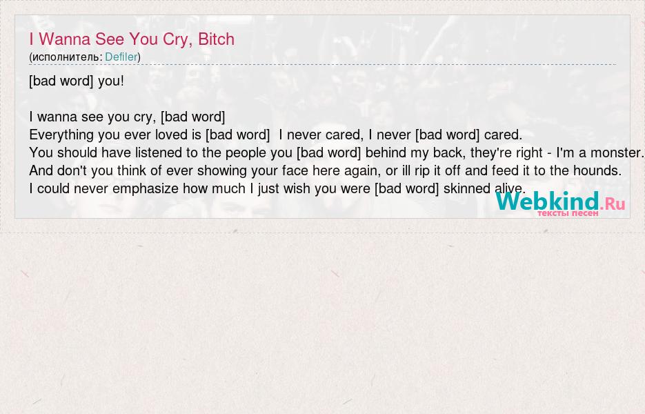 А как ты думаешь, о чем песня "I Wanna See You Cry, Bitch" ?
