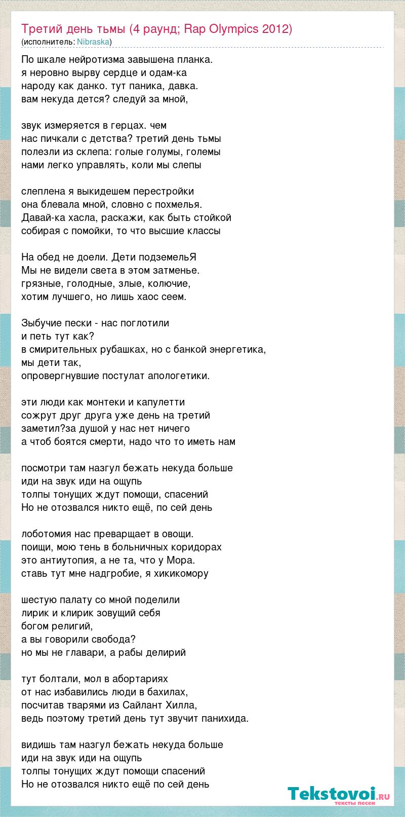 А как ты думаешь, о чем песня "Третий день тьмы (4 раунд; Rap Olympics 2012)" ?