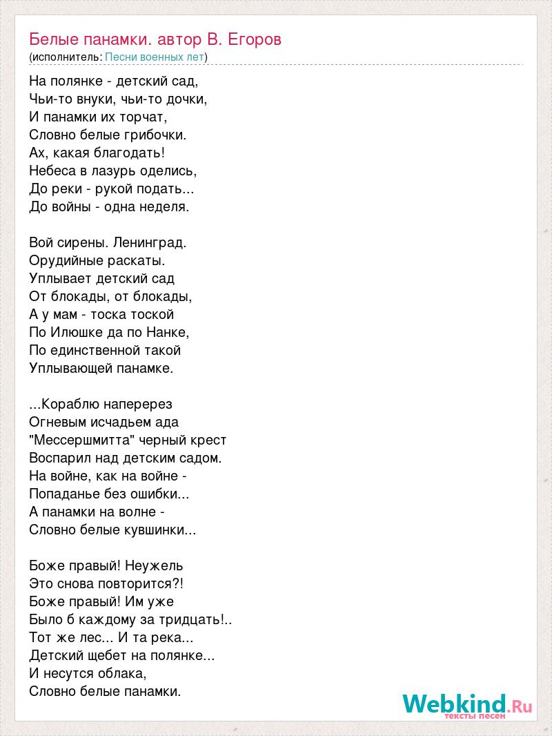 А как ты думаешь, о чем песня "Белые панамки. автор В. Егоров" ?