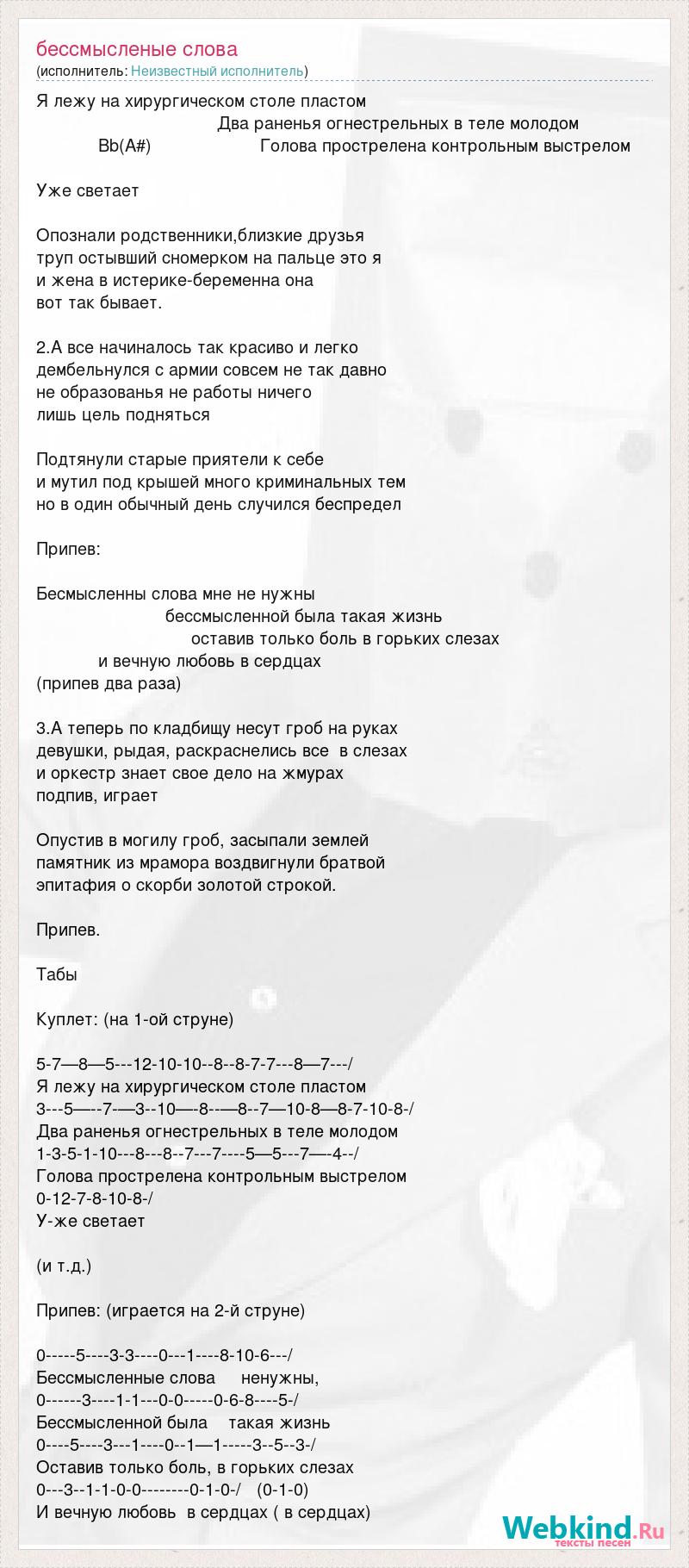 А как ты думаешь, о чем песня "Бессмысленые слова" ?