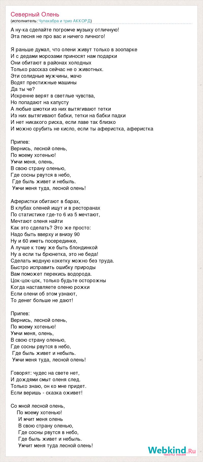 А как ты думаешь, о чем песня "Северный Олень" ?