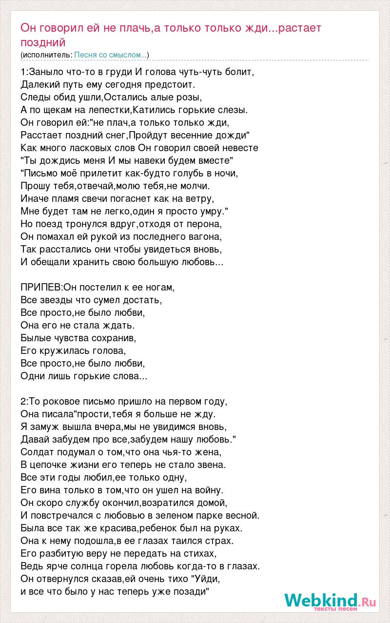 Главная→Исполнители→Песня со смыслом...→Он говорил ей не плачь,а только только жди...растает поздний